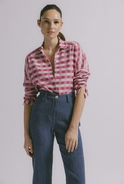 Camisa de manga larga en un print de cuadro vichy, confeccionada en algodón con efecto lino, una elección responsable que cuida de tu piel y del medio ambiente. Presenta cuello clásico y cierre frontal con botones. Su silueta oversize hace que pueda adaptarse a distintos cuerpos y a distintas vidas, acompañando el paso del tiempo sin perder sentido.